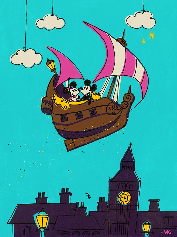 “Mickey’s Neverland Flight” Acrylic on Birch Wood