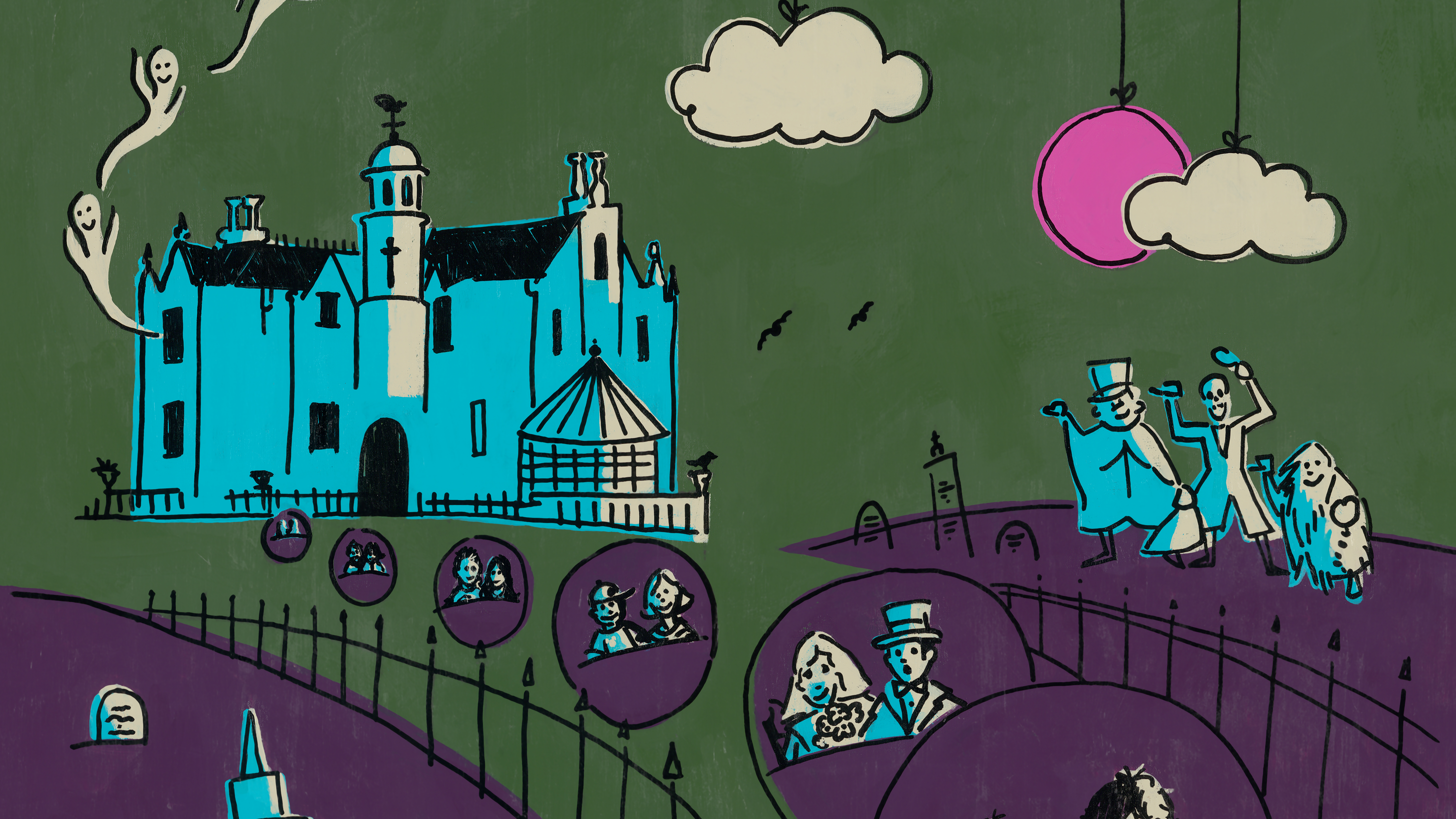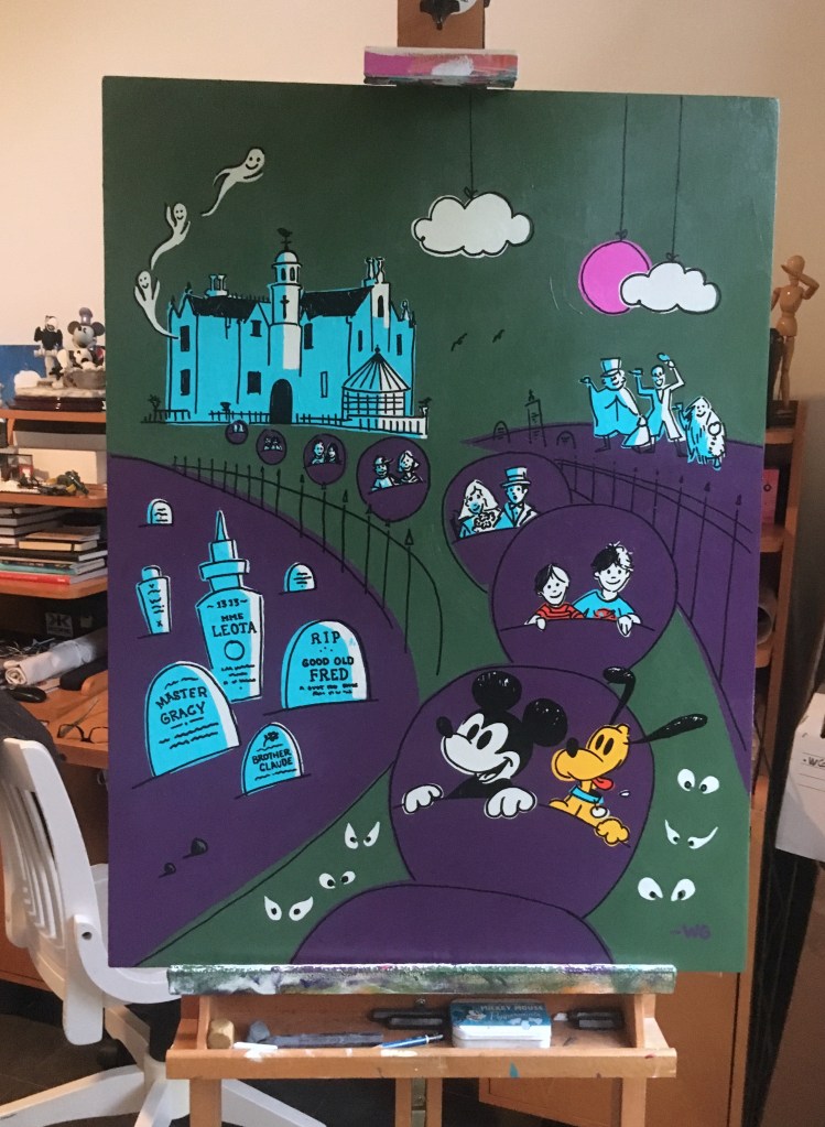 The Haunted Mansion is my favorite Disney parks attraction of all time. I used to visit Walt Disney World as a kid and stare up aat these awesome portraits in the stretching room as I heard the Ghost Host say ” Your cadaverous pallor betrays an aura of foreboding, almost as though you sense a disquieting metamorphosis. Is this haunted room actually stretching? Or is it your imagination — hmm? And consider this dismaying observation: this chamber has no windows and no doors… which offers you this chilling challenge: to find a way out! (Laughs.) Of course, there’s always my way.”