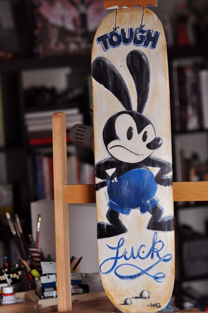 “Tough Luck” 8″ x 32″ Acrylic on recycled skateboard deck